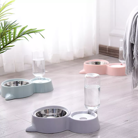 New 2-in-1 Cat Bowl Water Dispenser Automatic Water Storage Pet Dog Cat Food Bowl Food Container with Waterer Pet Waterer Feeder