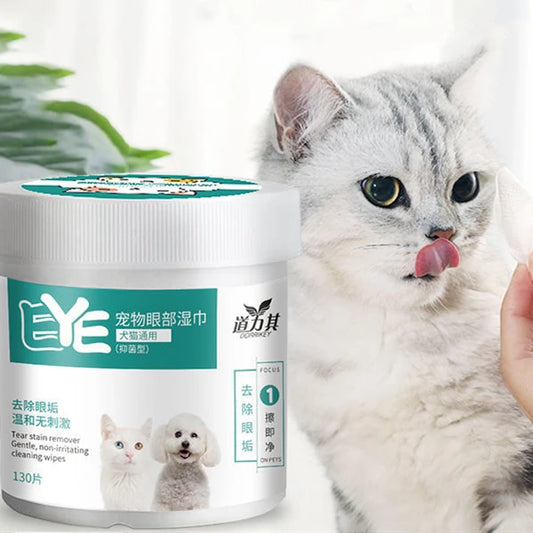 130PCS Pet Wet Wipes Eye Tear Ear Stain Remover Cleaning Portable Wet Towels Dog Cat Pet Cleaning Wipes Grooming Wipes Towel