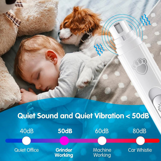 Dog Nail Grinder 2-Speed Electric Rechargeable Pet Nail Trimmer Painless Paws Grooming Smoothing for Small Medium Large Dogs Cat
