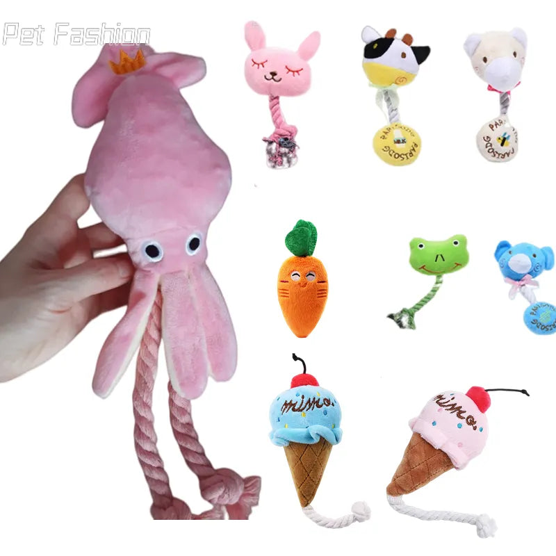 2023 Cute Squid Small Dog Toy Sound BB Plush Pet Puppy Rope Toys Pink Chew Squeak Toys For Cat dog toys for small dogs pet