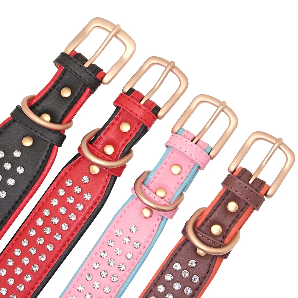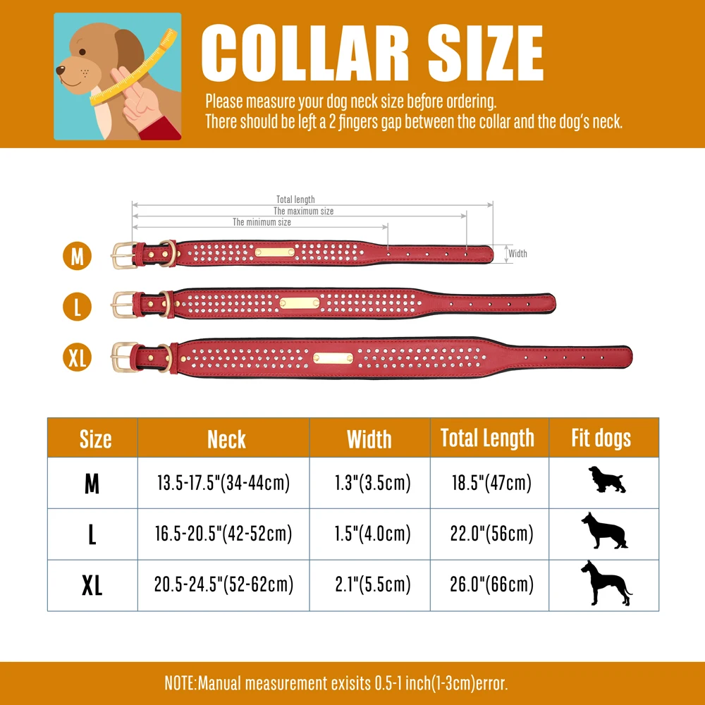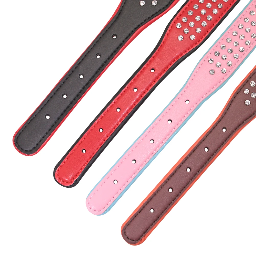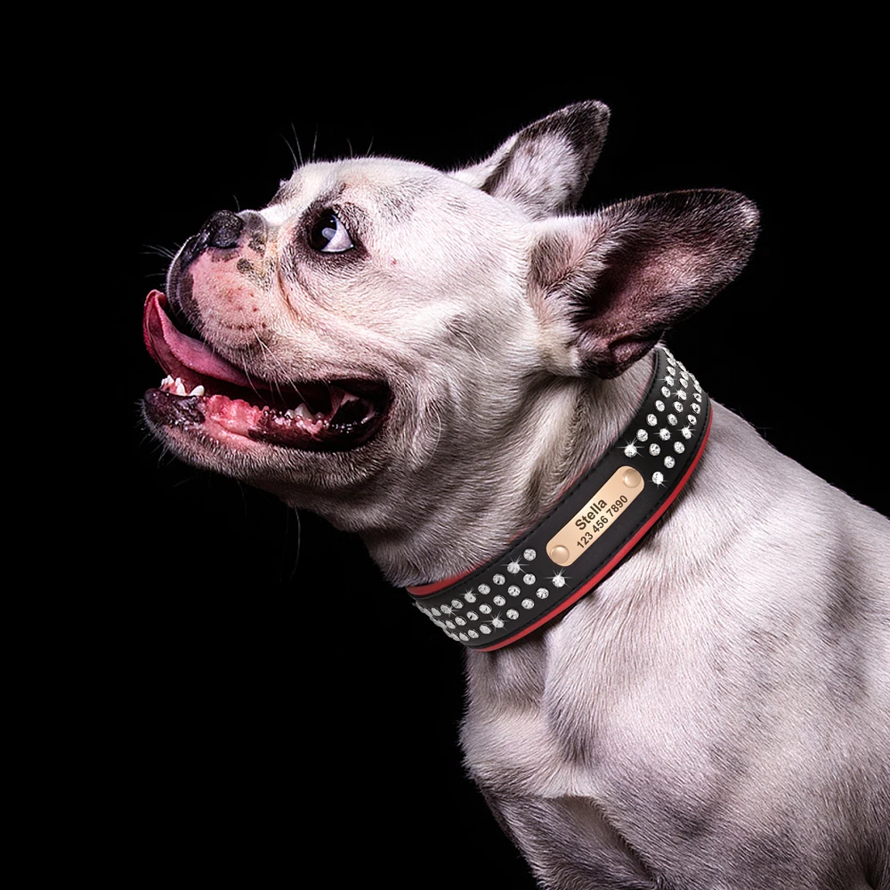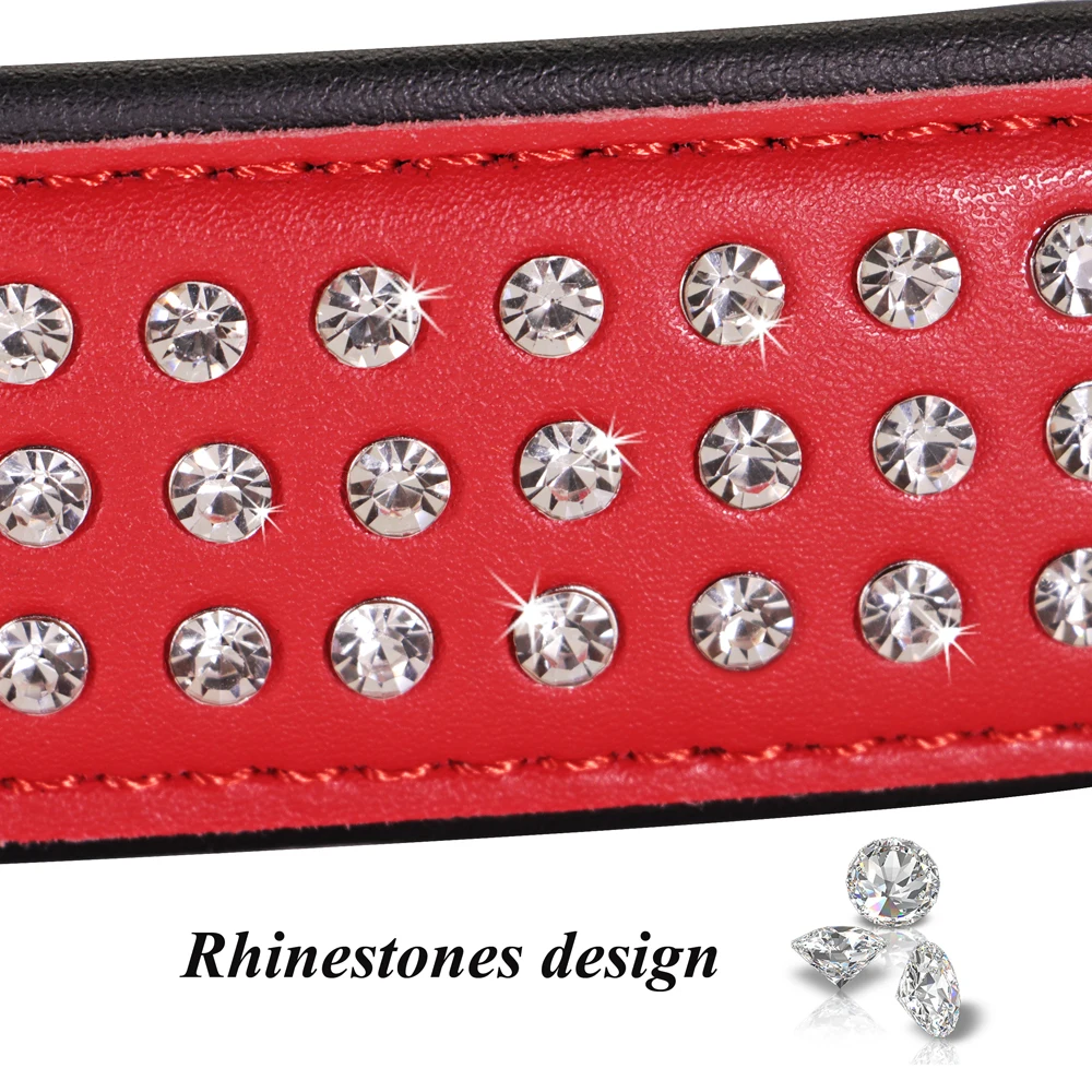 Custom Leather Dog Collar Bling Rhinestone Big Dog Collars Soft Padded Pet Necklace With Engraved ID Tag For Medium Large Dogs