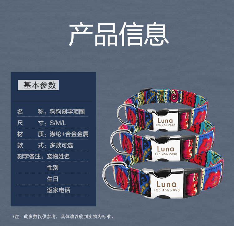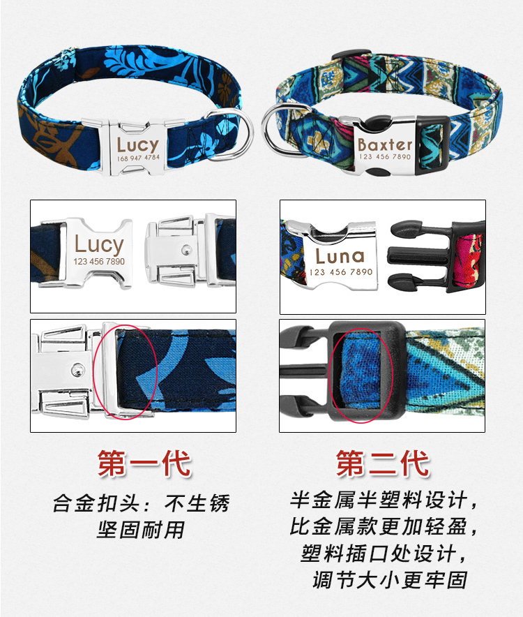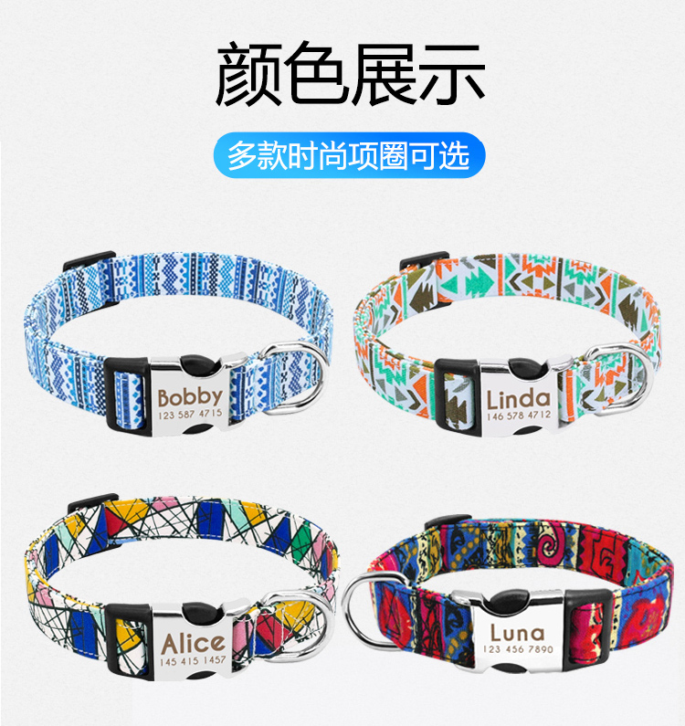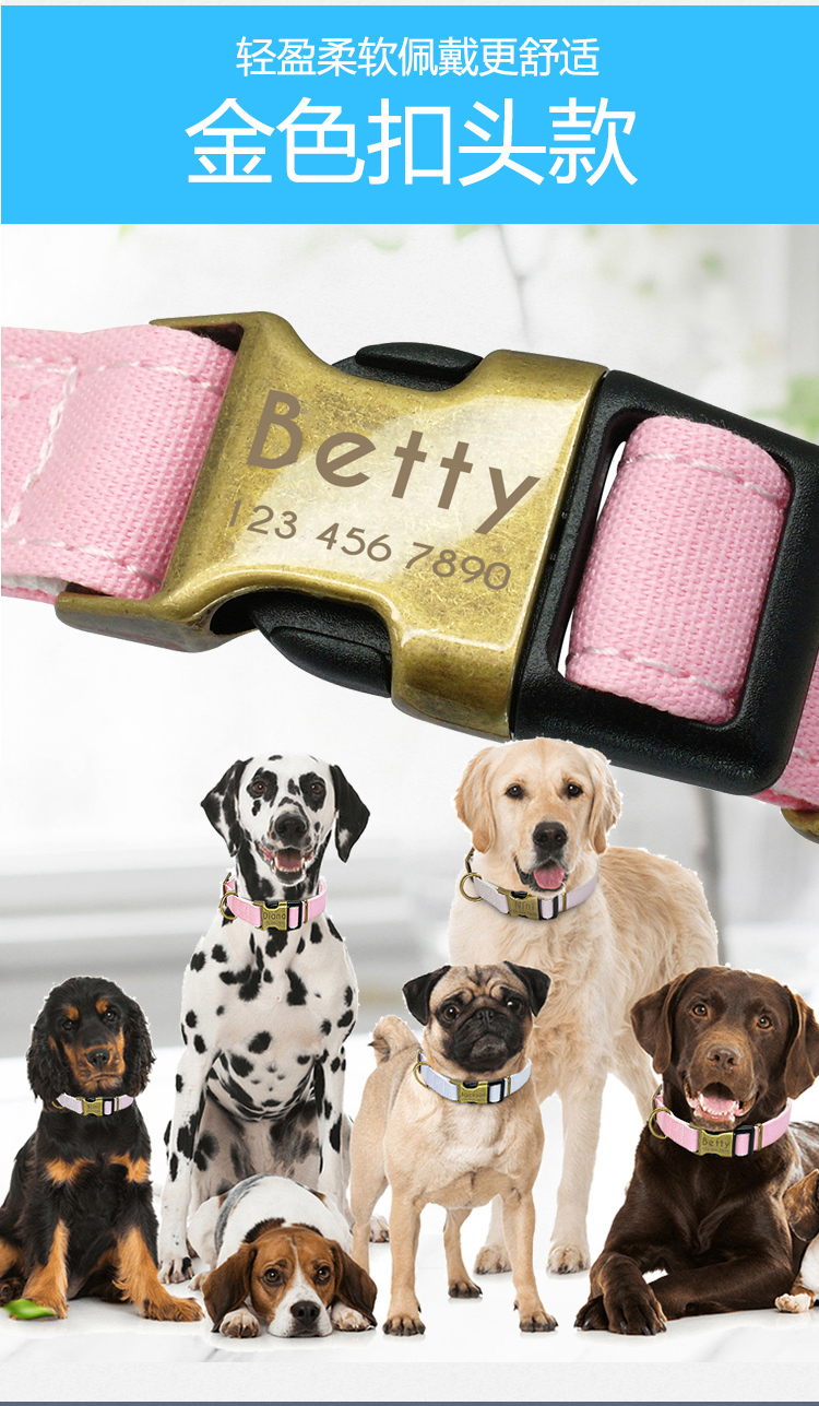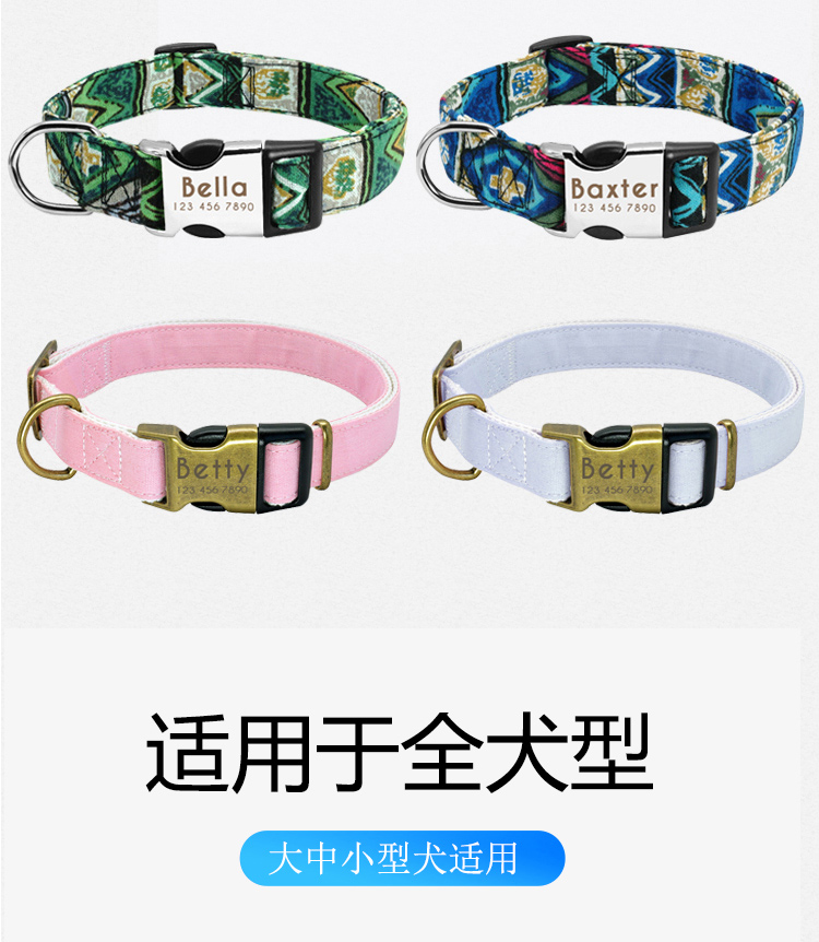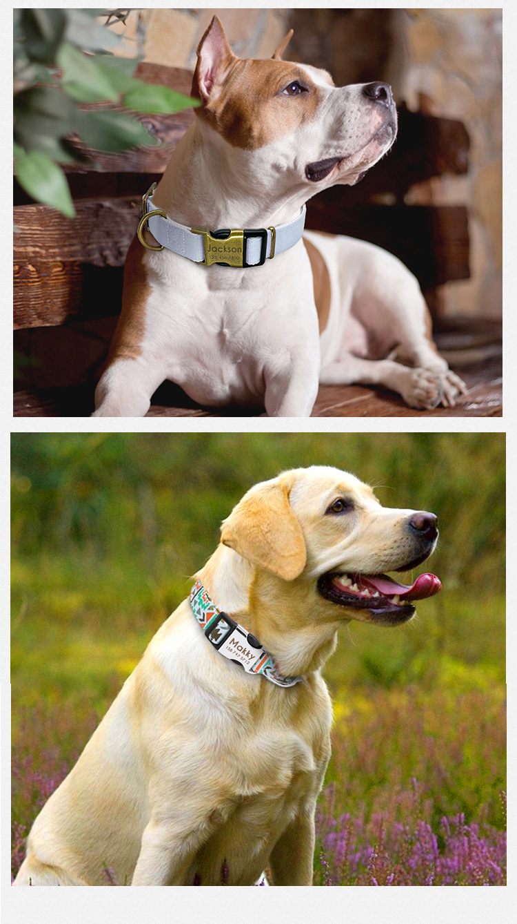 Dog Collar Pet Supplies Collar Night Reflective Collar Small Size Dogs Golden Retriever Bandana Lettering Anti-Lost