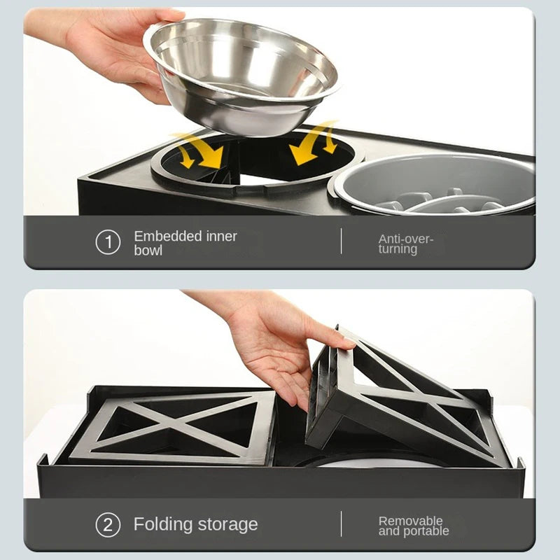 Dog Double Bowls Stand Adjustable Height Pet Feeding Bowl With Slow Food Bowl Elevated Food Water Feeders Lift Table for Dog Cat