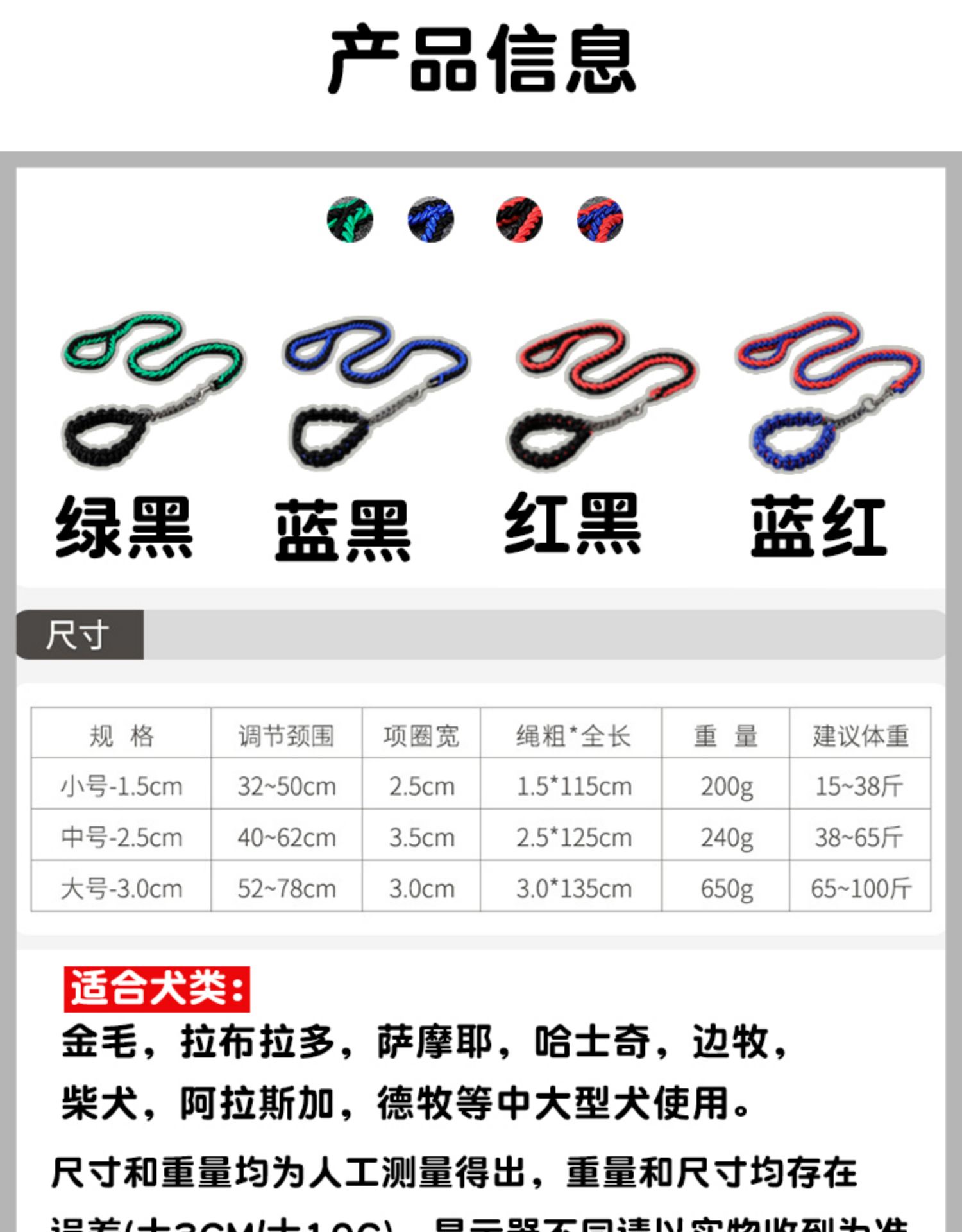 Dog Hand Holding Rope Medium Large Dog Samoyed Golden Retriever Labrador Dog Leash Collar Woven Explosion-Proof Dog Chain
