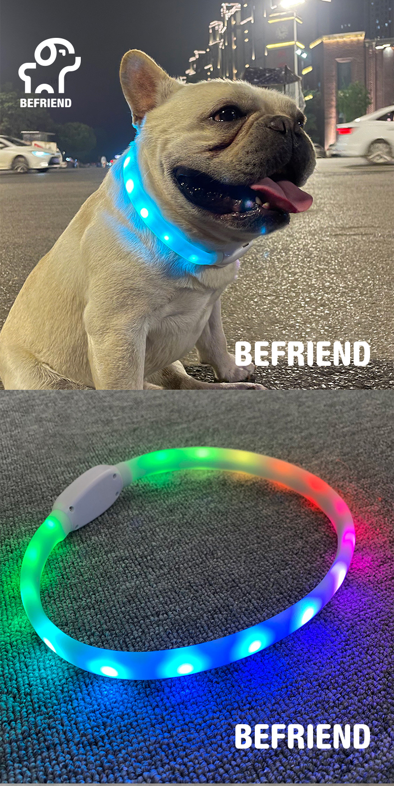 Dog Luminous Collar USB Charging Flash Collar Pet Luminous Anti-Lost Collar Teddy Night Dog Walking Light