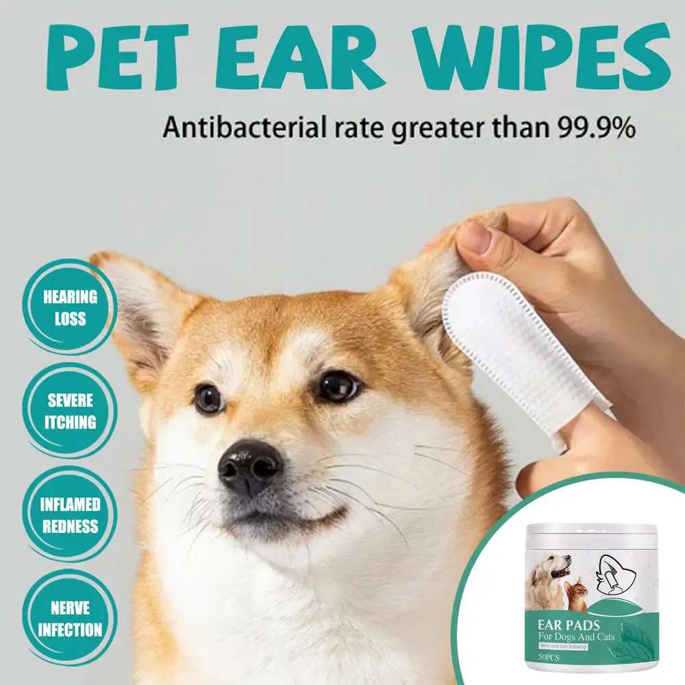 Ear Wipes For Dogs Portable Pet Ear Cleaning Wipes 50pcs Pets Dog Eyes Ears Cleaning Wipes Ear Wax Cleaning Finger Cots for pets