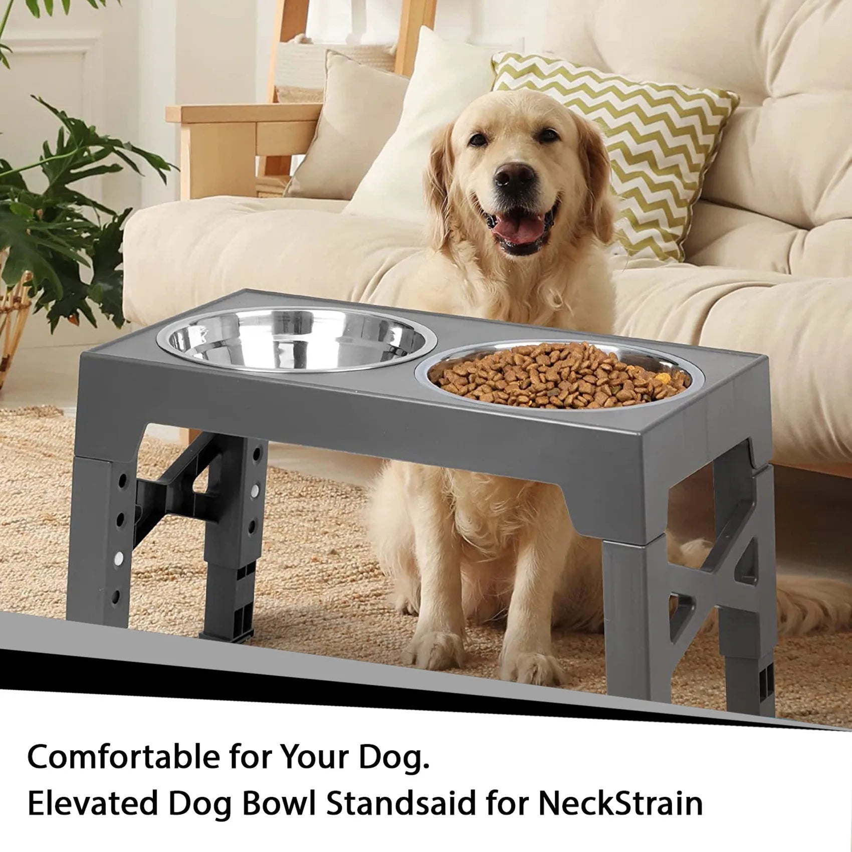 Elevated Dog Bowl Adjustable Raised Dog Bowl with Slow Feeder Dog Bowl and Dog Water Bowl Non-Spill for Small Medium Large Dogs