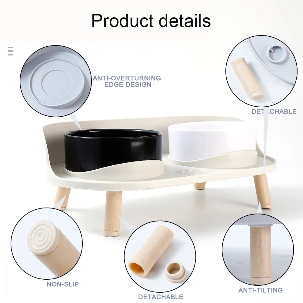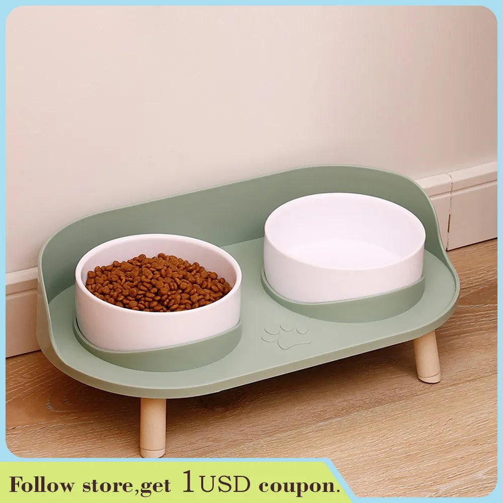 Food Feeders Pet Cat Double Bowls Feeder Adjustable Height Cats Dogs Drinker Water Bowl Dish Elevated Feeding Kitten Supplies