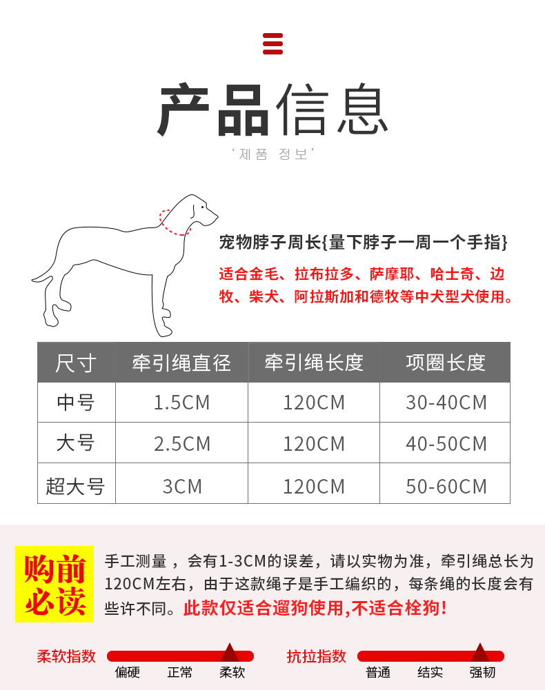 Labrador Golden Retriever Dog Hand Holding Rope Medium Large Dog Dog Walking Artifact Dog Rope Dog Chain P Chain Collar