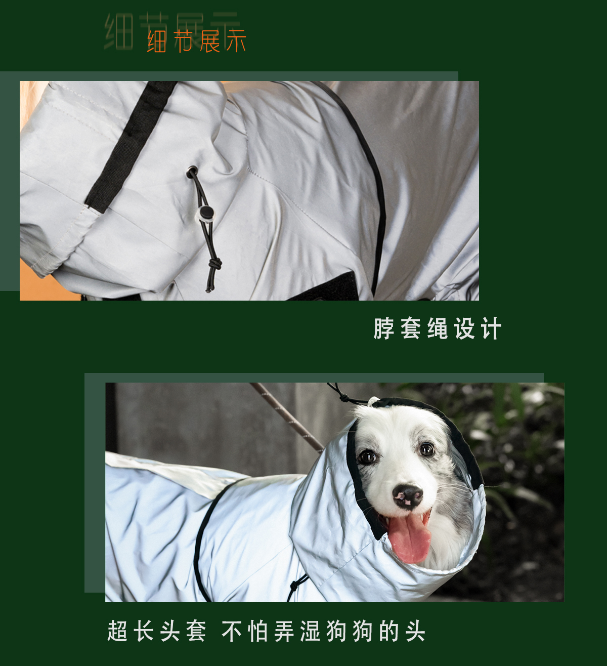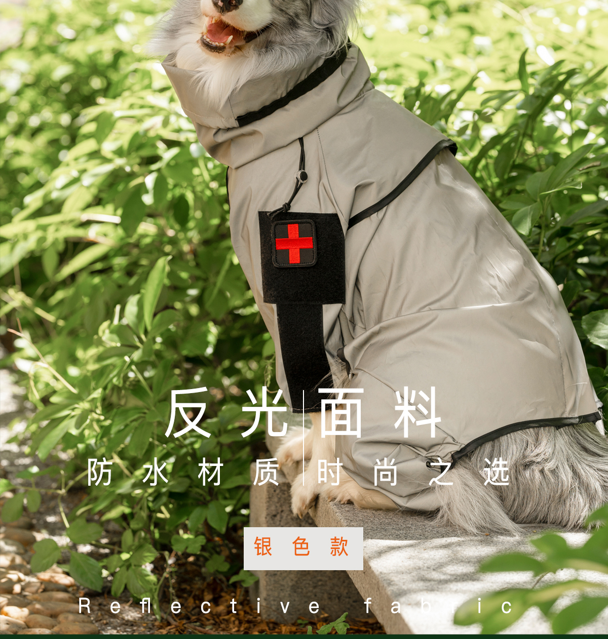 Large Dog Big Dog Raincoat Dog Clothes Summer and Autumn Four-Legged All-Inclusive Pet Shell Jacket Waterproof Reflective Golden Retriever/Border Collie