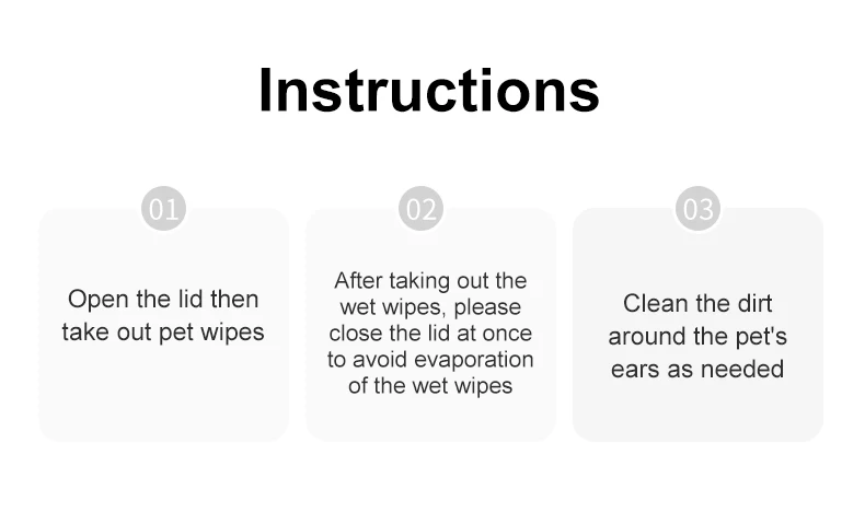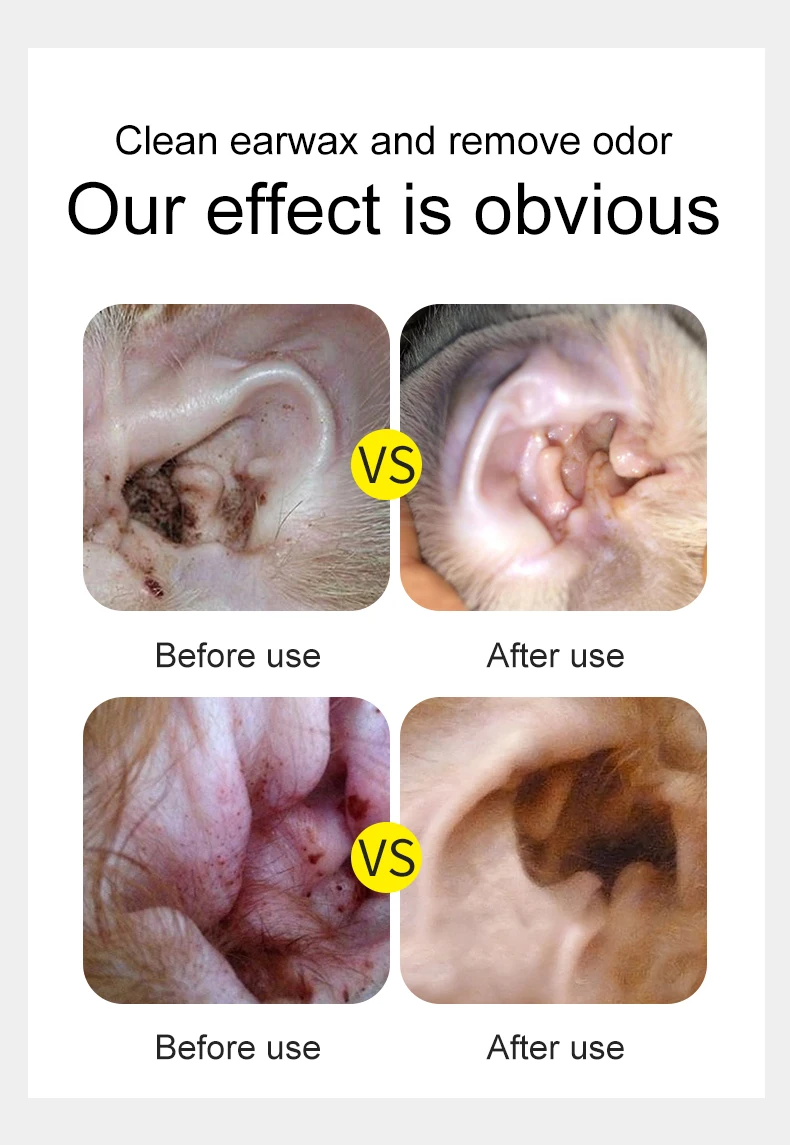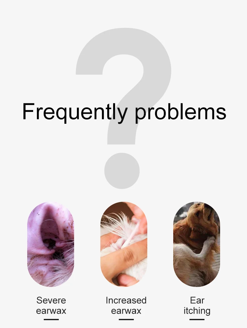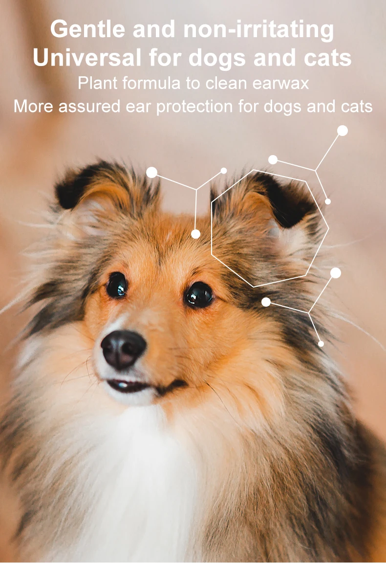 Open the bottle cap,take a wet towel and gently wipe the pet's ears to remove dirt,and seal the bottle cap after use.