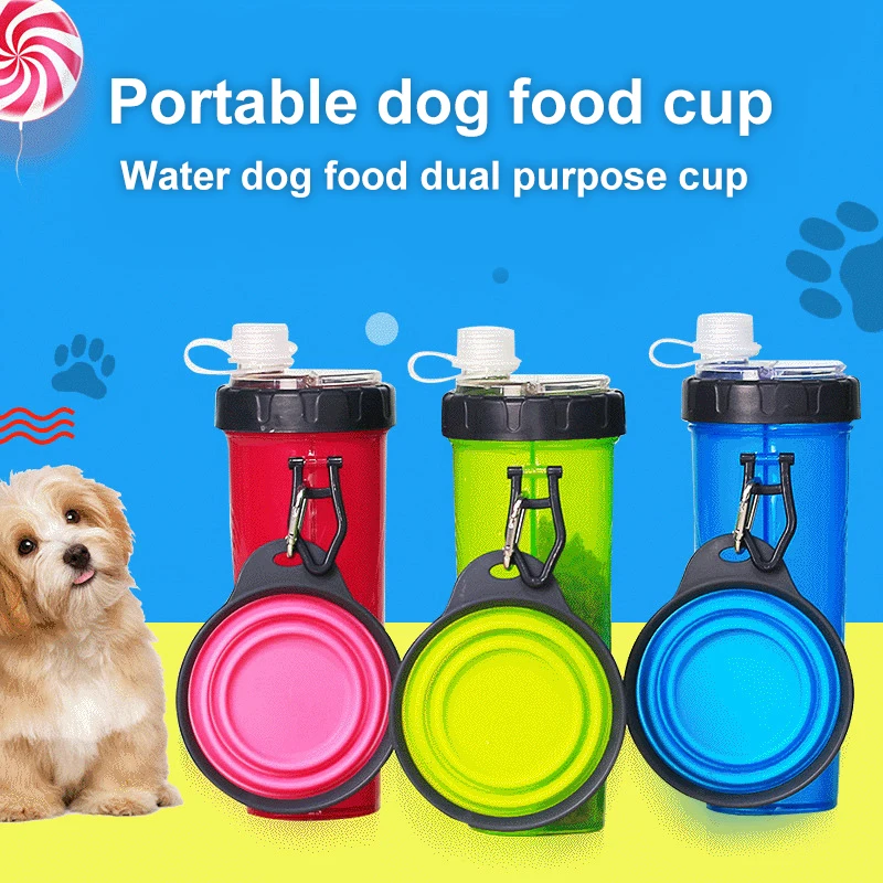 Portable Pet Cup Foldable 2in1 Pet Outdoor Water Food Bowl Pet Water Food Feeder Portable Travel Water Bottle
