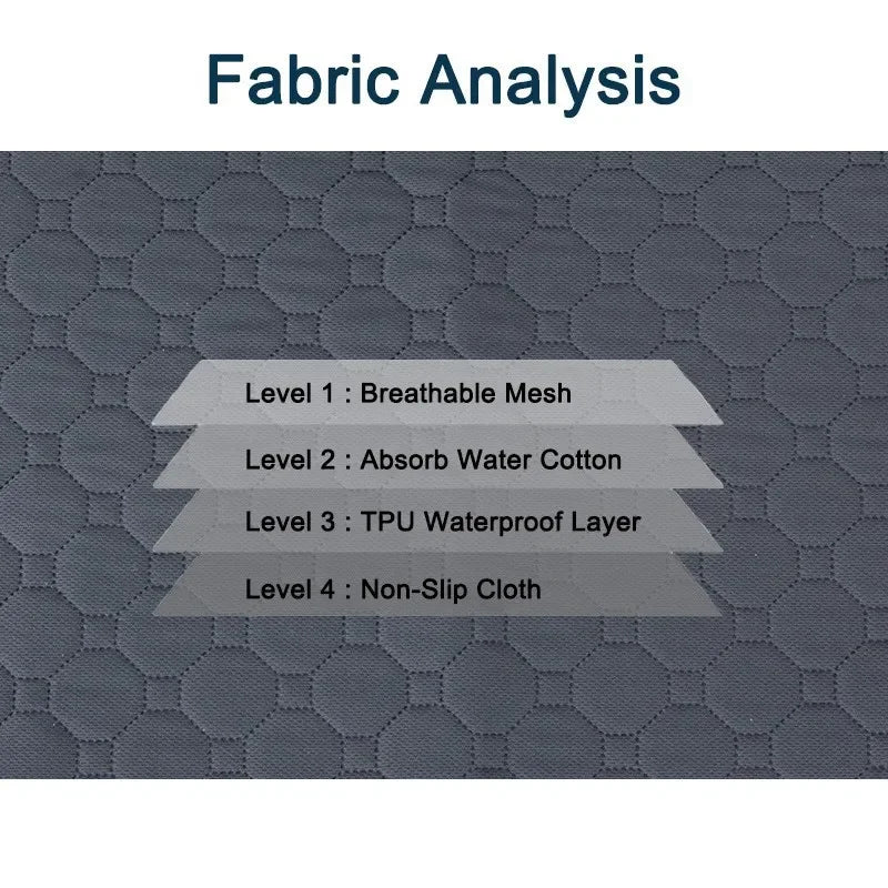 Great Material of 4 Layers - Soft & breathable mesh surface for ultimate comfortable; Super absorbent high density middle layer; waterproof PU inner layer; Polyester fabric with anti-slip silica gel bottom.