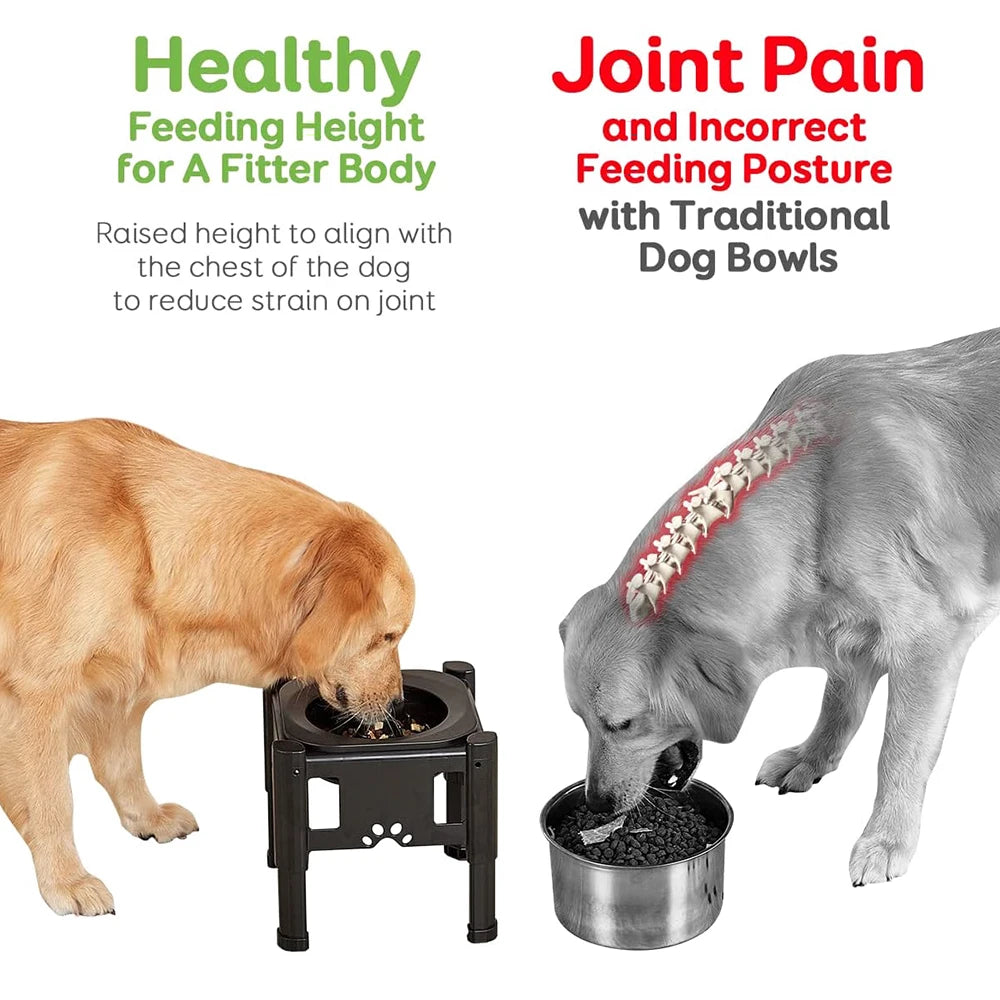 Slow Feeder Dog Bowl Elevated Food Bowls, Adjustable Raised Eating with 3 Heights (6.1", 7.7", 9.3") Mess Proof & Non-Slip Dish